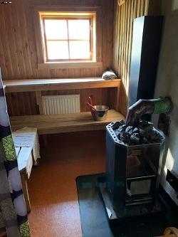 Zusatzbett im Wohnraum. Mit Holz befeuerte Sauna im Haus. Nicht weit zu den