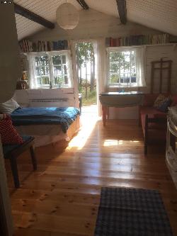 Fritidshus på Skatudden, Grisslehamn. Tomten ligger med utsikt mot Ålands hav, med knappt 100 m stig ner till klapperstrand och badklippor. Havskajak och enklare kajak finns. Skogstomt på 6 000 m2 med gräsplan för badminton, fotboll, etc. 2 vuxencyklar. Storstuga: Sovrum med dubbelsäng och öppen spis. Stort rum med täljstenskamin, piano och gitarrer, en bäddbar soffa för 2 personer samt en utfällbar gästsäng. Kök utrustat med spis, kyl/frys, diskmaskin och vedspis. Dörrar ut mot altan med utsikt över Ålands hav. Badrum med golvvärme, dusch, tvättmaskin och toalett (separett med begränsad kapacitet). Mulltoa ( med separett) på baksidan av huset. Bredbrand, fiber 100 Mb in 100 Mb ut. Annex: Litet sovrum med sovplats ( 140 cm). Allrum med köksdel, bäddsoffa för 1 person samt säng för 1 person. Allrummet har dörr mot altan med utsikt över Ålands hav. Mulltoa (med separett) i anslutning till huset. Längre ner på tomten, med magnifik utsikt över Ålands hav, finns vedeldad bastu med relaxrum och dusch, 15 m2. Badplats: Härliga badklippor och klapperstrand: knappt 100 m Välsorterad ICA-Butik, öppen 7 dagar i veckan, 1,5 km Fiskaffär, bagarbod och café, fem restauranger. ATG kiosk. Albert Engström ateljé, museum och sandstrand. Det nyrenoverade och utbyggda Hotell Havsbaden med Nordens största spa och flera olika bassänger. Större mataffärer, apotek mm. finns i Älmsta och Hallstavik , ca 20 min med bil. Systembolag finns i Hallstavik, 20 min med bil. För den som vill ta en dagsutflykt till Åland avgår Eckerölinjens färja tre gånger om dagen. Vägbeskrivning: Goda kommunikationer med SL bussar. Med bil från Stockholm ca 11.5 mil, med motorväg till Norrtälje. Fastigheterna hyrs ut veckovis respektive 2 veckor i taget. Det går även att hyra en weekend ( fre fm - sön kväll) . Du som söker en rofylld och vacker plats där du kan måla, skriva eller musicera i lugn och ro kommer inte att bli besviken! Dieses Objekt hat folgenden Komfort: