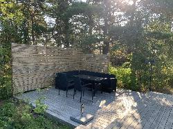 Med utsikt över Bornholm ligger denna helt strandnära arkitektritade stuga från 1980. Stort mysigt allrum med öppen spis och öppet kök. Privat väg som delas med grannhuset (finns bara en granne). Del av vägen är helt privat med bom. Nära borrby strands camping med kiosk, butik, tennisbana och pool. Poolen är f n stängd under sommaren 2023. Fyra sovrum i rad, ett rum med två sängar och övriga med enkelsängar. Ett badrum med dubbla tvättställ, tvättmaskin, wc och dusch. En enklare gäststuga med en våningssäng och en extrabädd finns på tomten. Tempererad utedusch, som är perfekt när man kommer sandig från stranden, och väl tilltaget trädäck framför huset (ca 80 m2) med utemöbler. Otroligt härliga sanddyner strax utanför huset. Rumsrena och väluppfostrade hundar välkomnas. Grill finns. WiFi/bredband finns. Studsmatta. Dieses Objekt hat folgenden Komfort: