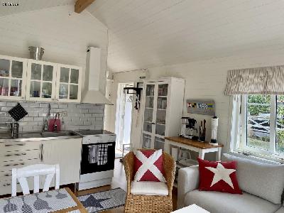 Gäststugan ligger nära ägarens hus men det finns avskildhet.