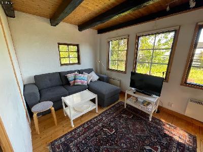Mysigt hus i två våningar, kök, wc/ dusch o allrum med bäddsoffa (1 extrabädd) på bottenplan, 2 sovrum på ovanplan med 2 enkelsängar i varje.