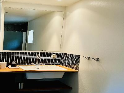 spacious bathroom with its rather unique style.