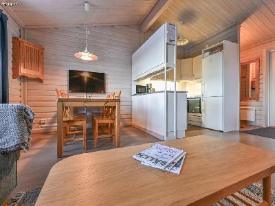 Här har vi en stuga på 4+1 bäddar med ett sovrum och öppen spis.