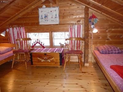 På loftet finns 2 enkelsängar.