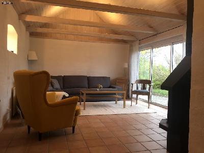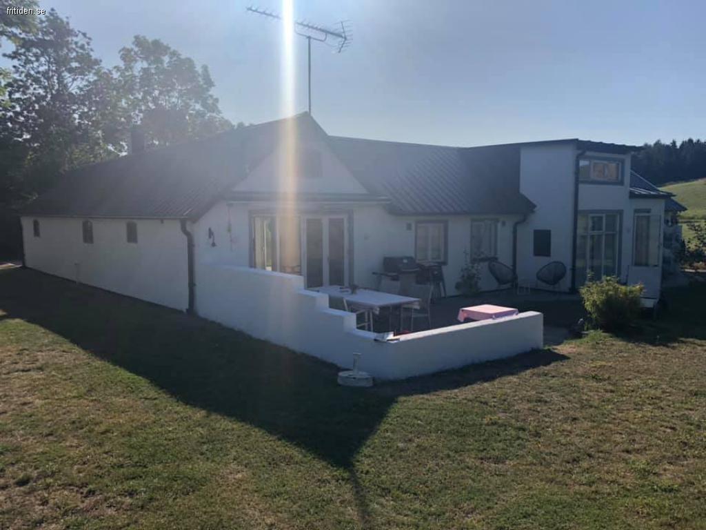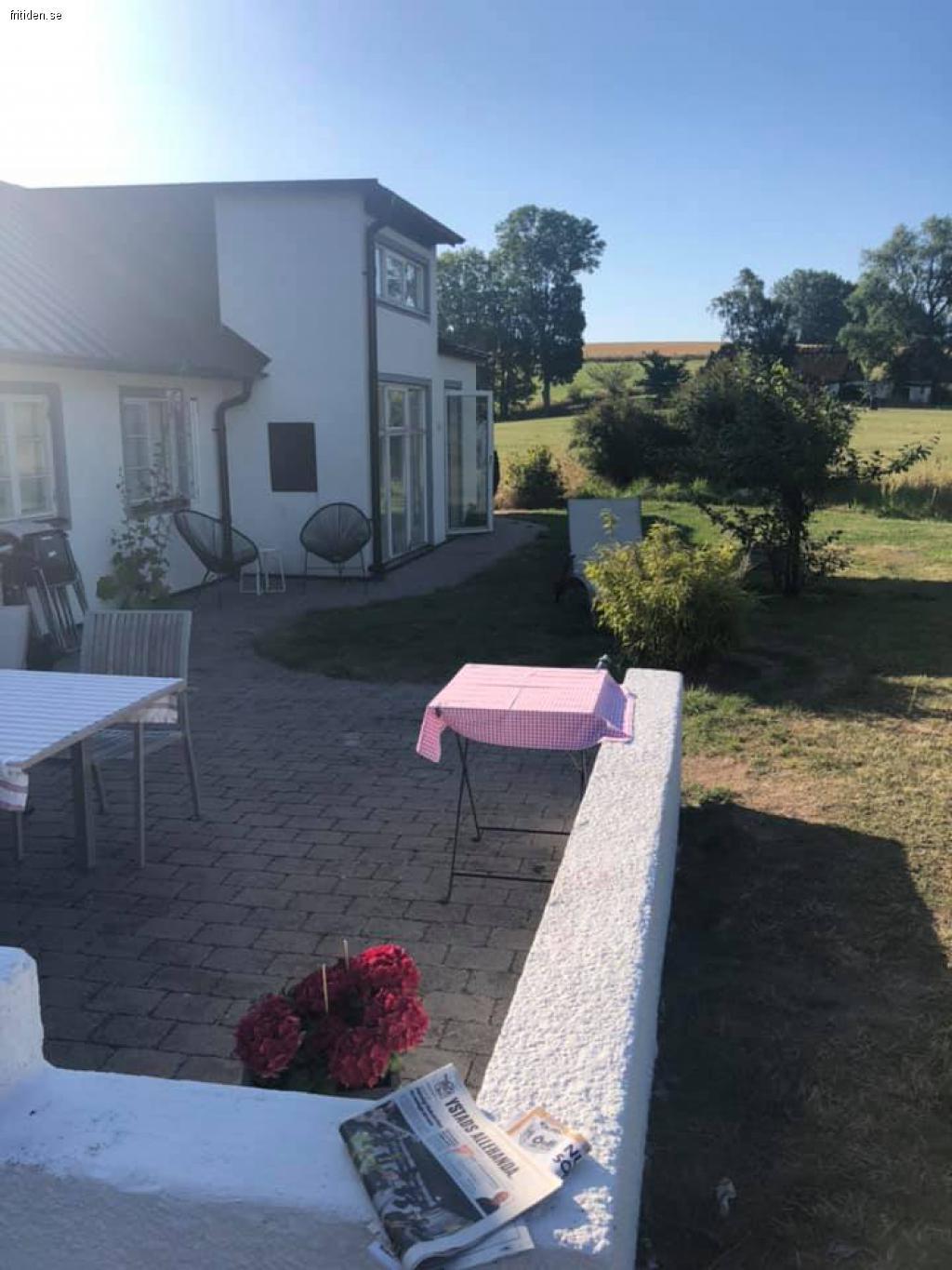 This wonderful house in a traditional skåne-style built house was extended and completely renovated in 2011 and now has about 140 square meters of lovely living space. This wonderful house is surrounded by a natural garden with two cosy patios and plenty of space for outdoor play. The house has four bedrooms; one has a king size bed, one with a sofa bed for 2 persons and two rooms have bunk beds. Furthermore, there are two modern bathrooms with shower / WC and washing machine, a modern and spacious kitchen with stove, oven, refrigerator/freezer, coffee machine, microwave and dishwasher and a large open and bright dining area. The living room (with large panoramic windows facing the beautiful surroundings) has a sofa, TV and fireplace. One part of the house has a ceiling with a loft with room for 2 persons (only adult). Total capacity of the house is 10 beds and there is for all enough seating and tableware.