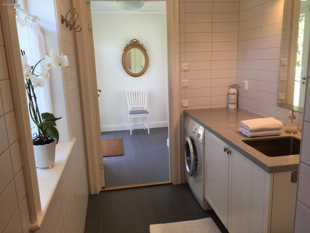 Nytt badrum (8 m2) med dusch, golvvärme, tvättmaskin och vattentoalett. Hallen har inbyggd garderob.