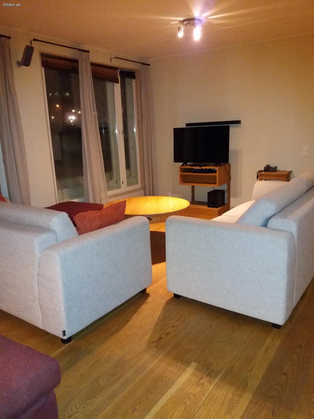 86 kvm; 2 sovrum med dubbelsäng + bäddsoffa i v-rum.