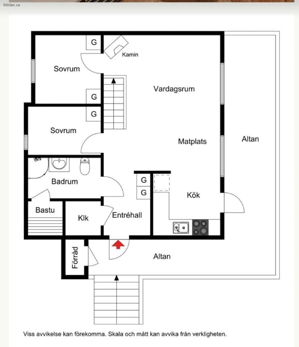 Torkrum, Braskamin, låsbart Skidförråd, Altan