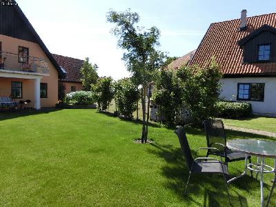 Det finns ingen reserverad uteplats tillhörande lägenheten men det finns många uteplatser med grillmöjligheter i trädgården och i den lilla parken att välja på. Damm med fiskar, vilken ej är inhägnad. Gung- och klätterställning finns i trädgården.