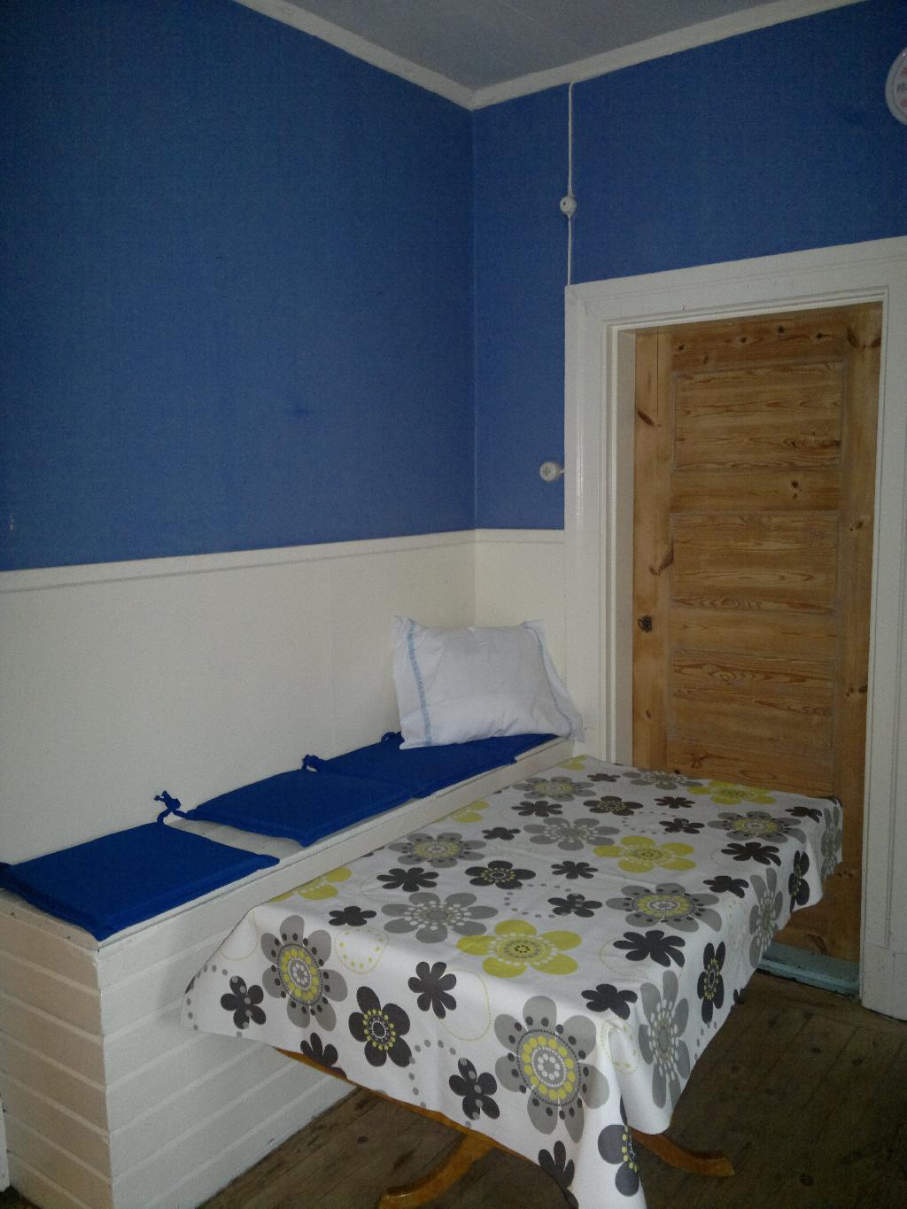 På övervåningen finns ytterligare ett sovrum med tre bäddar.