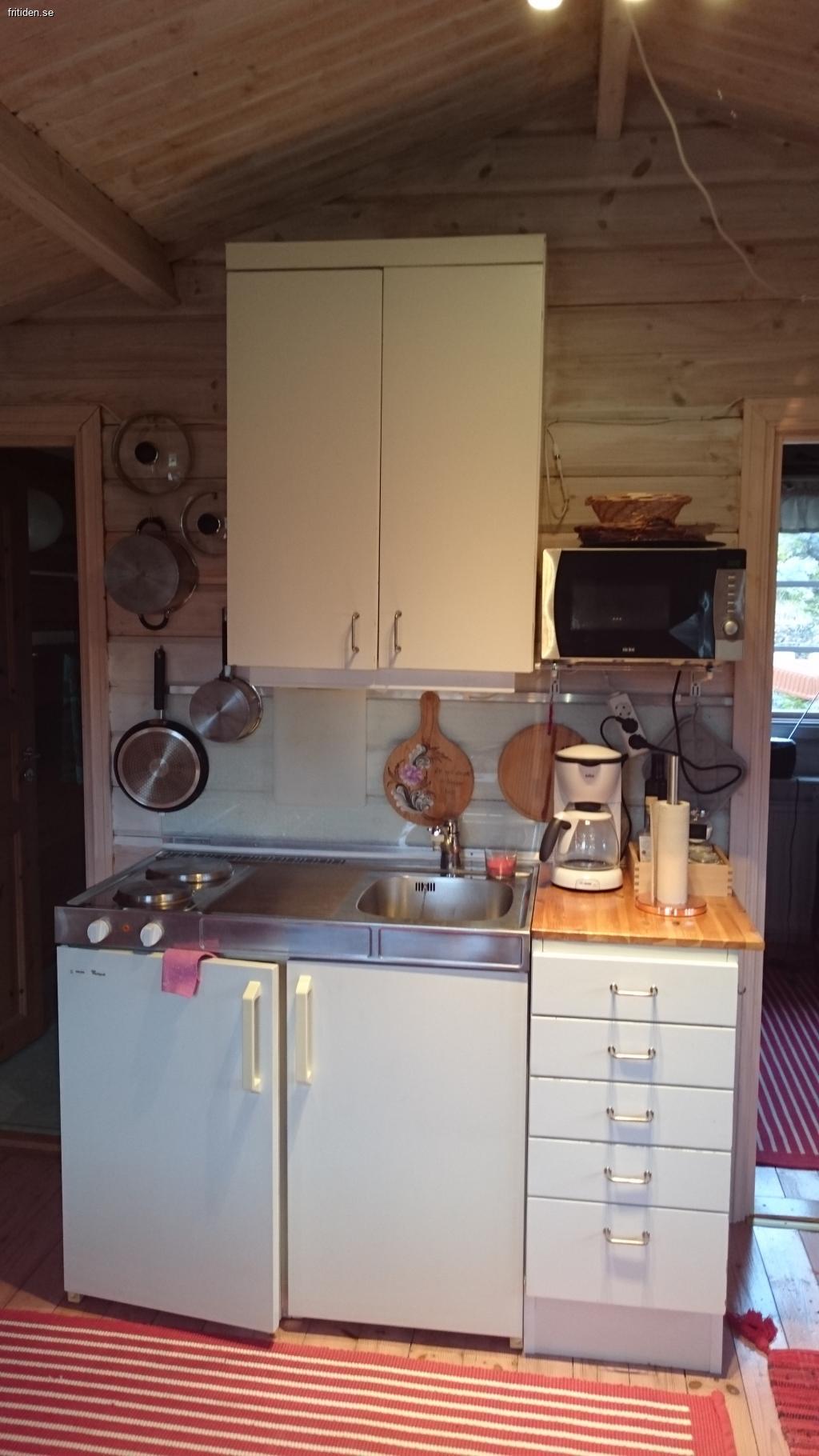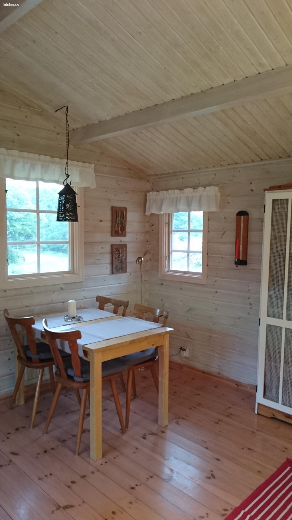 Stugan är på 27 kvm. Allrum med soffa, matplats och trinettkök (två kokplattor, frysfack, kylskåp och diskho i ett) micro och vattenkokare samt utrustning för enklare matlagning. Ett separat sovrum med två sängar. Toalett med dusch. WiFi och TV