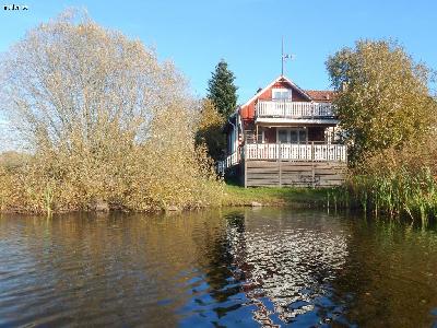På nedre plan har ni ett stort och ljust allrum där en av de bekväma sofforna nattetid blir en mycket bekväm bädd för 2 (som kan avskärmas med en gardin). Här nere finns dessutom ett lagom stort, bekvämt och välutrustat kök med en ”typisk svensk” bekväm matplats. Det finns dessutom ett fräscht badrum med wc och dusch. Från vardagsrummet leder dörrar ut till den stora möblerade altanen där ni sitter på ”metspö-avstånd” från Mörrumsån! Fisket är i toppklass längs en 2 km lång privat sträcka av Mörrumsåns övre del. Fisket här bedrivs som “catch and release”.