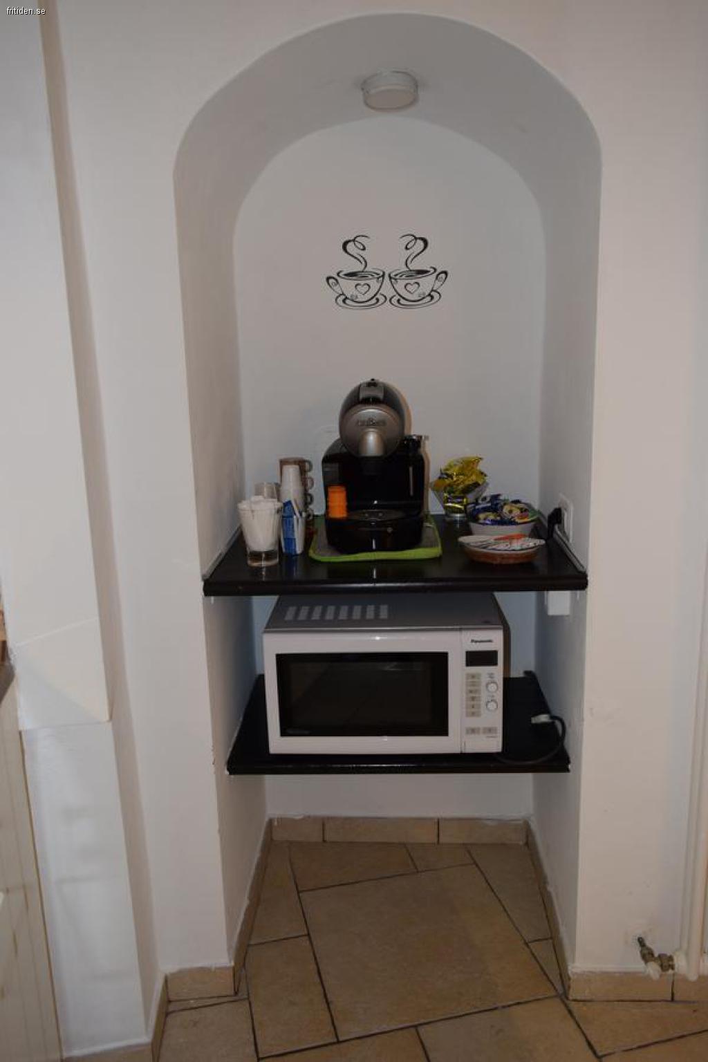 Boendet ligger på bottenvåningen och nås via en säkerhetsdörr med kod. På bottenvåningen finns det: entré med pentry (induktionshäll, köksredskap, minikyl, kapsel kaffemaskin, mikrovågsugn), bäddsoffa med dubbelsäng, ett badrum med dusch och bidé.