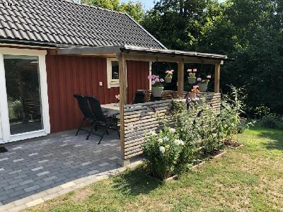 I direkt anslutning finns en möblerad uteplats med tak och grill.