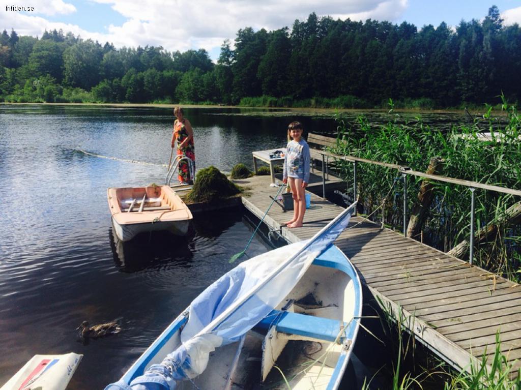 Du har din egen brygga med roddbåt, kanoter, en liten segelbåt, brädor för att paddla denna 40 000 kvm "pool".