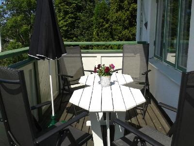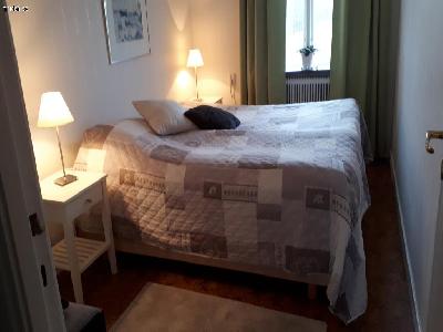 Denna hemtrevliga lägenheten består av två rum och kök belägen på övervåningen i en villa. Ett sovrum med 2 bäddar samt allrum med bäddsoffa. Dusch och toalett. Egen ingång. Balkong och uteplats i en härlig trädgård.