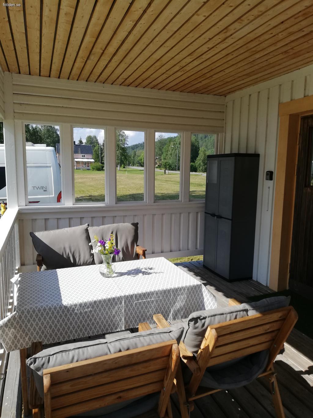 Den har en stor veranda med utemöbler, fäste för hund. Grillplats.