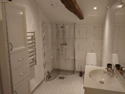 I det nyrenoverade stenhuset från 40-talet finns det gott om utrymme för många. Redan i entrén möts man av ett lugn och denna avslappnade atmosfär följer en vidare genom hela huset. Huset är skapat och inrett för dig som önskar njuta av din ledighet till fullo.