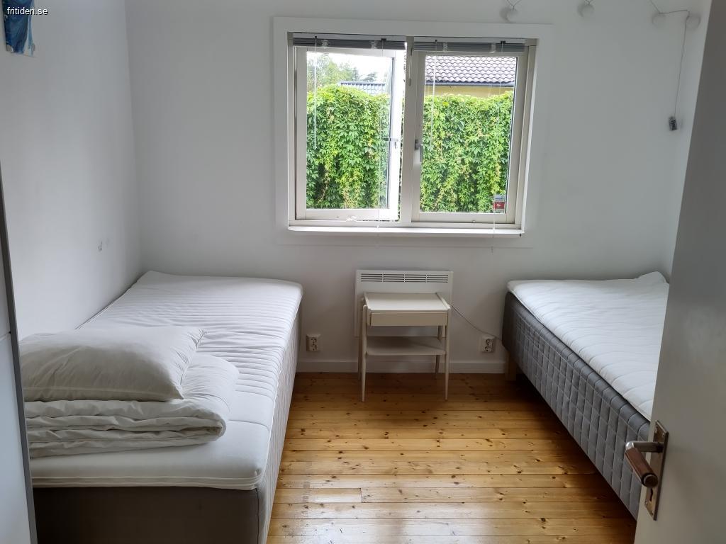 Fint litet hus 7 minuters promenad från havet. Beddingestrand bjuder på en lång strandpromenad som är fantastisk året om. Huset har tre rum varav två sovrum och ett vardagsrum, kök och badrum med kombinerad tvättstuga. Ett av sovrummen har två 90 cm breda sängar. Det andra sovrummet som är delvis öppet mot vardagsrummet har en dubbelsäng och en skrivbordsplats samt glasdörr ut till trädgården. I vardagsrummet finns en bäddsoffa. I trädgården finns en inglasad altan dit vardagsrummet ofta flyttar på sommarhalvåret. På sommarhalvåret finns också en stor studsmatta i trädgården.