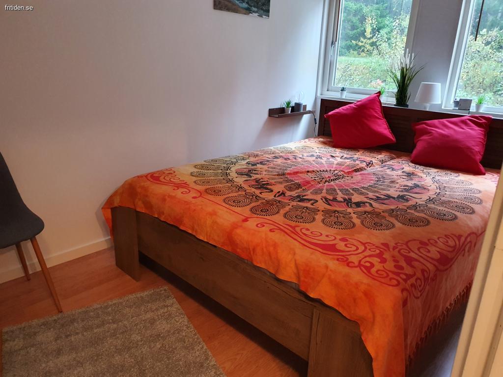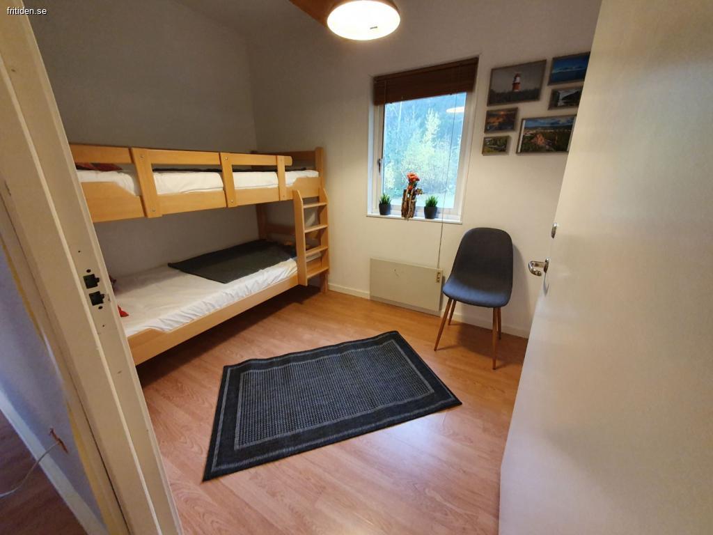 Huset har två sovrum; Ett sovrum med dubbelsäng och garderober och det andra sovrummet har en våningssäng 90x200 cm samt garderob och byrå som är utrustad med datorskärm och flera USB utgångar.
