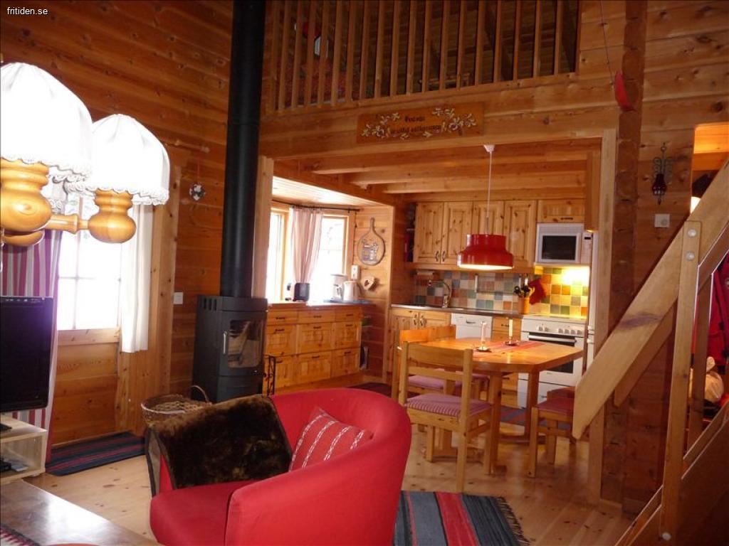 Trivsam timmerstuga i Gubbmyren med utsikt över Lindvallens och Sälfjälltorgets skidbackar.