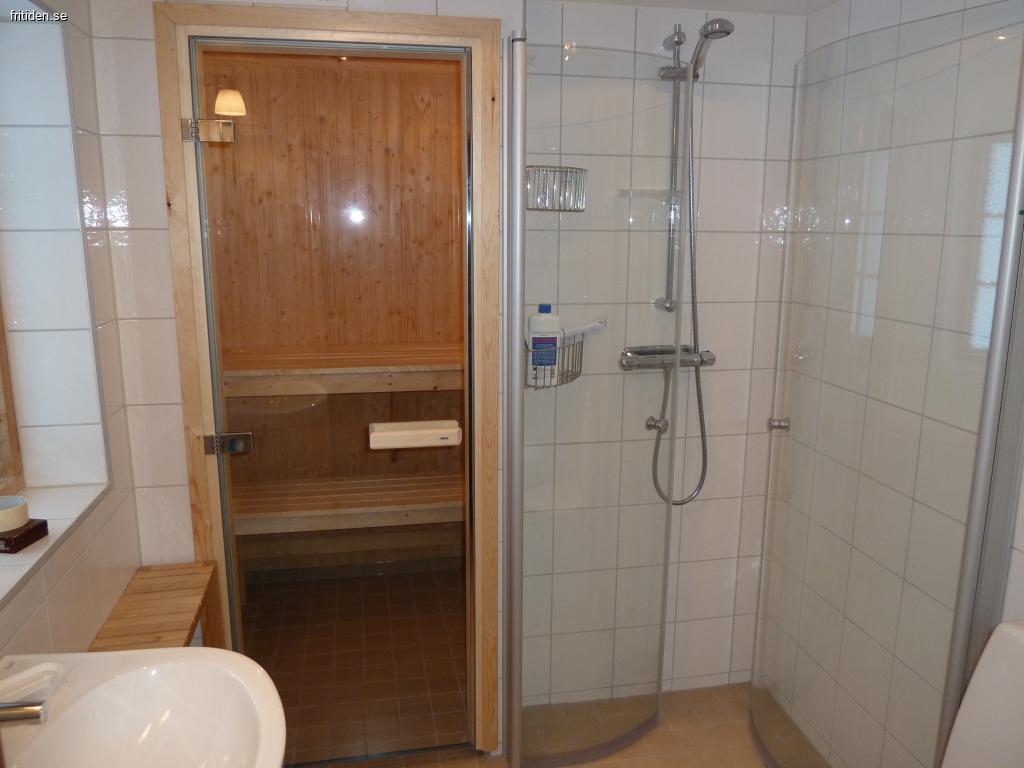 Storstuga, kök, 2 sovrum, hall, badrum, bastu samt loft med 2 sängar och lekhörna.