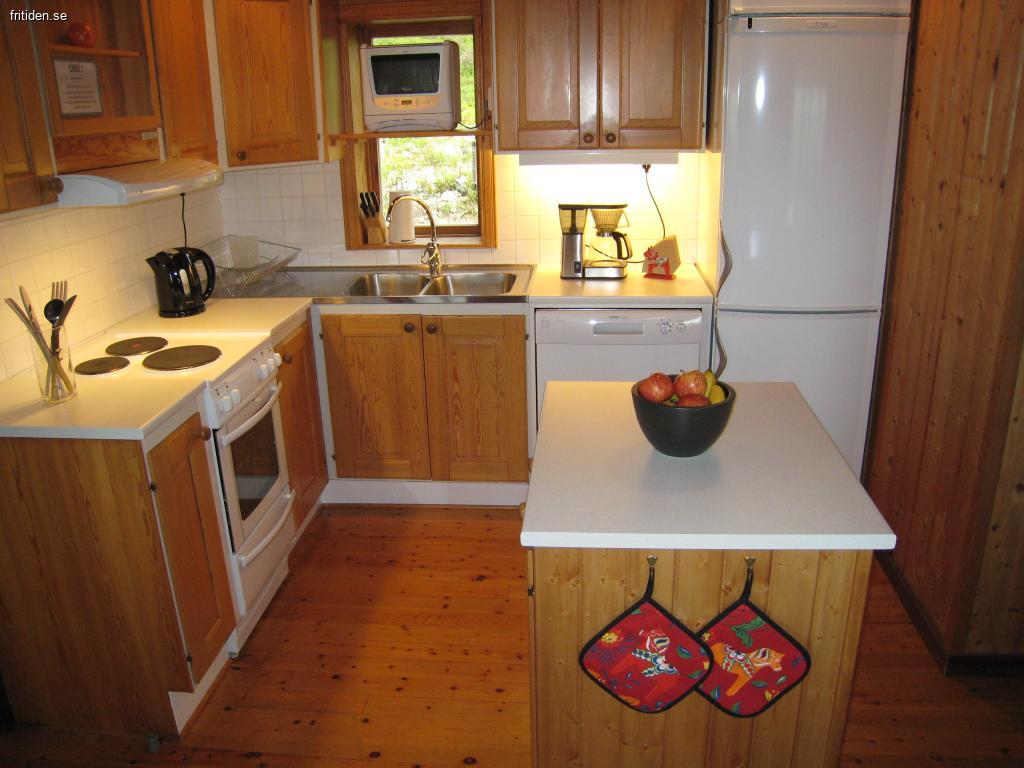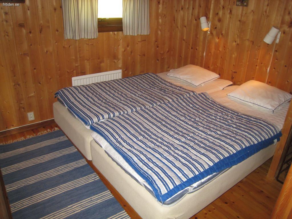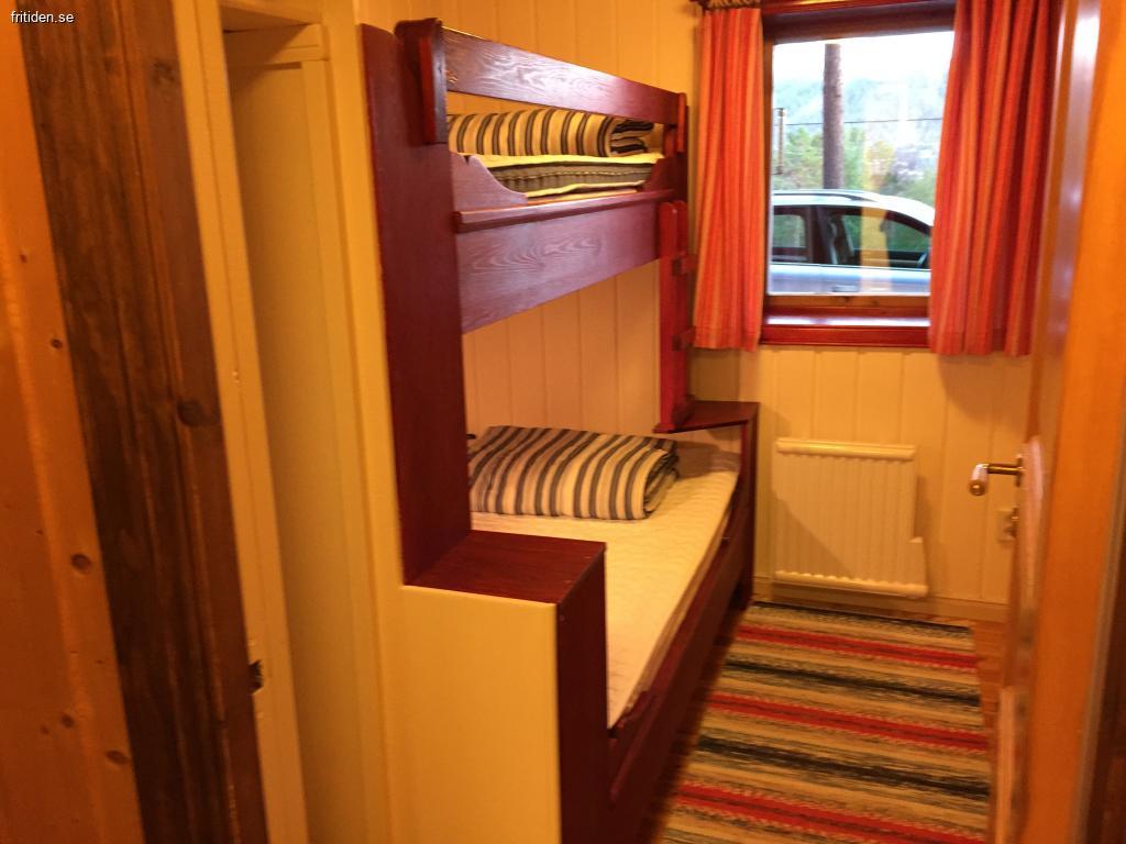 Övre plan: Sovrum med dubbelsäng, WC, Stort allrum med kök, spis med ugn, kyl, frys, micro och diskmaskin.