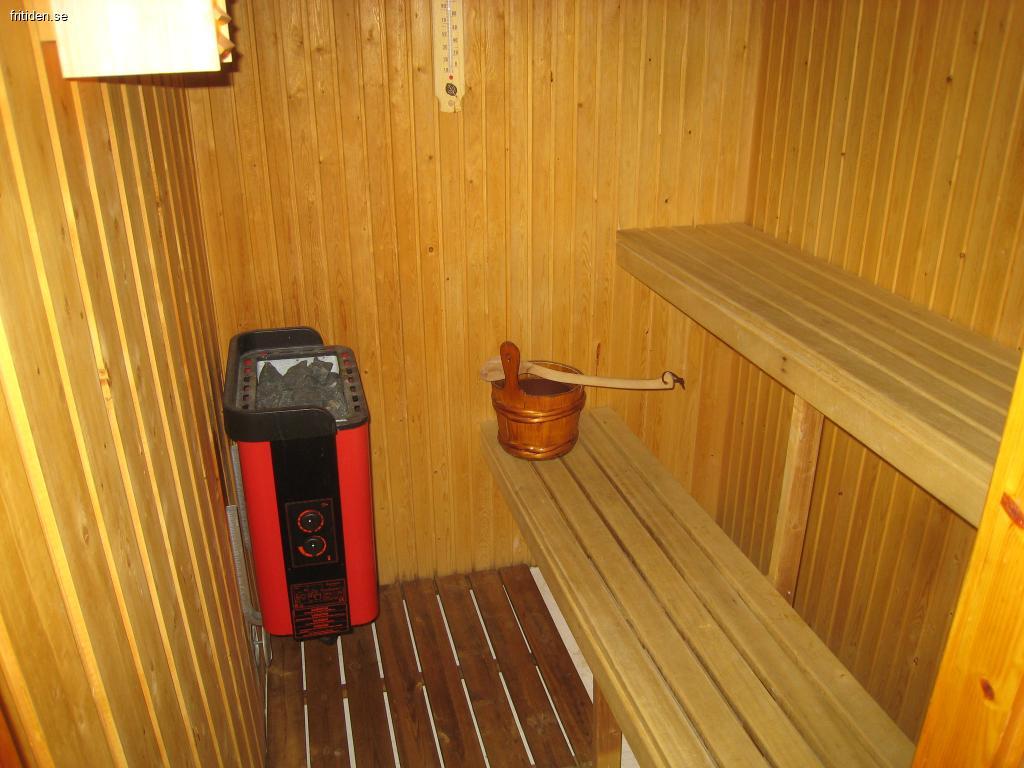 Nedre plan: Ett sovrum med två våningssängar och ett sovrum med en våningssäng. Dusch, WC, bastu, torkskåp.