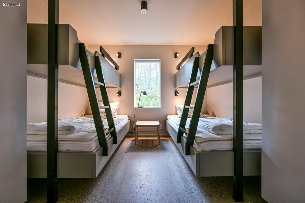 På entréplan finns ett rum med två våningssängar (80/105), ett rum med en våningssäng (80/105), och ett rum med en dubbelsäng.12 personer får bo i huset samtidigt.