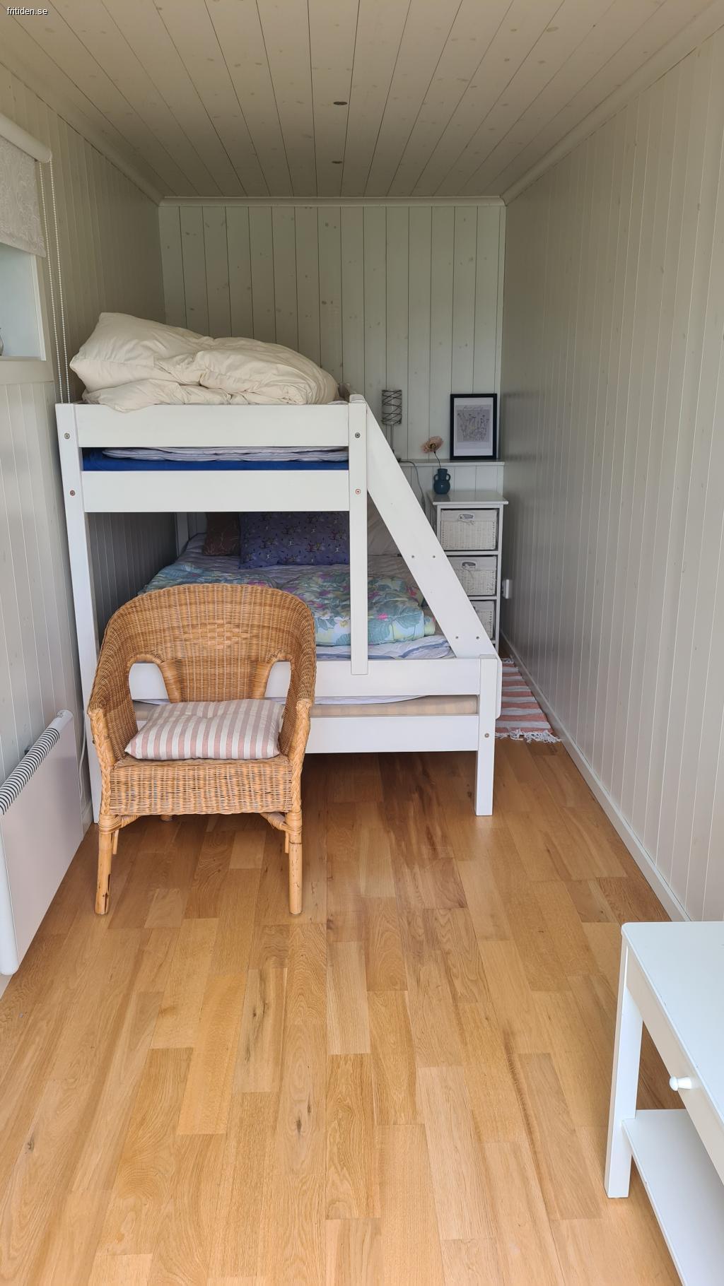 Sovrum 4: Ingång utifrån. En familjevåningsäng. 120cm under och 90cm över.