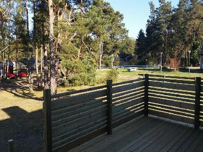 Altan på baksida, med utgång ifrån köket, samt stor terrass på framsida med kvällssol.
