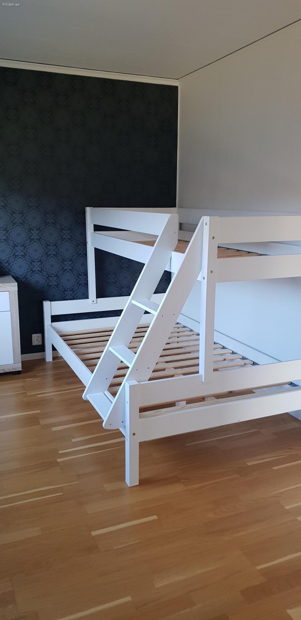 Ett sovrum med familjevåningssäng (2 sover nere och en ovanför) samt en bäddfåtölj med extra tjock madrass = 4 bäddar.