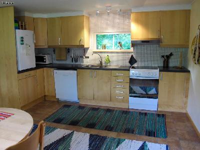 Golvvärme. Helkaklat badrum. Kök med kyl, diskmaskin, micro, kaffe- och vattenkokare. Tvättmaskin. TV