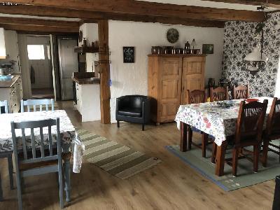 Matplats för 12 person med braskamin (ved finns). Finns mycket porslin, glas bestick.