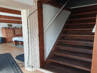Vårt renoverade korsvirkeshus från 1800 talet med mycket charm och med bjälkar i tak.