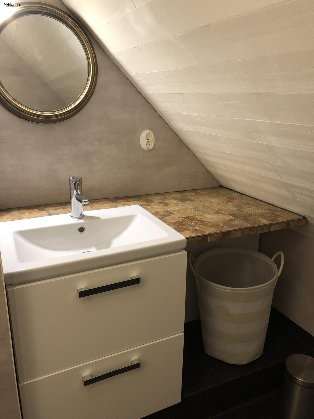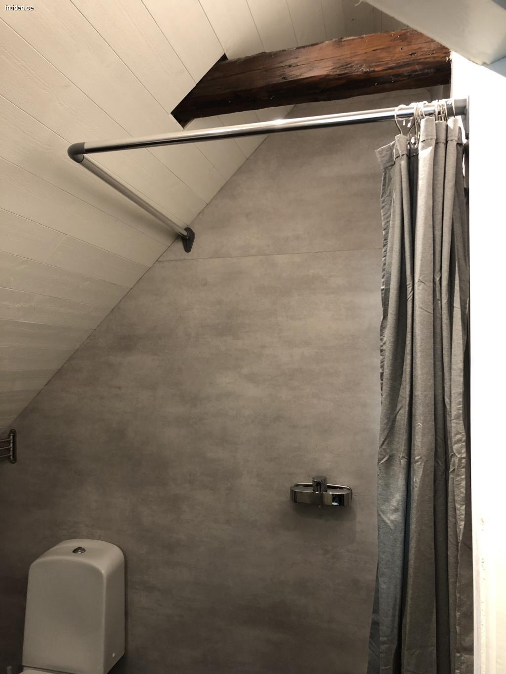 Helkaklat badrum med dusch. Tvättmaskin/med torktumlare.