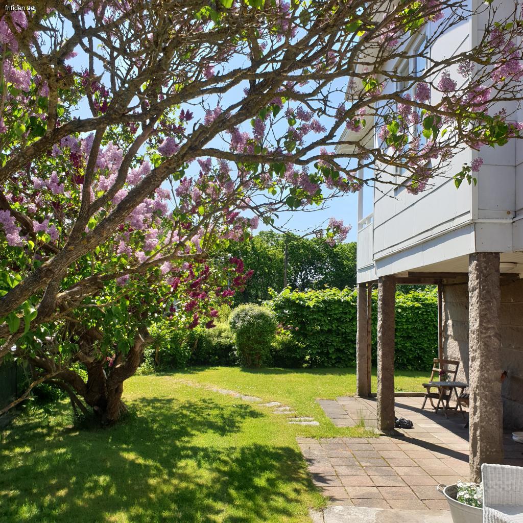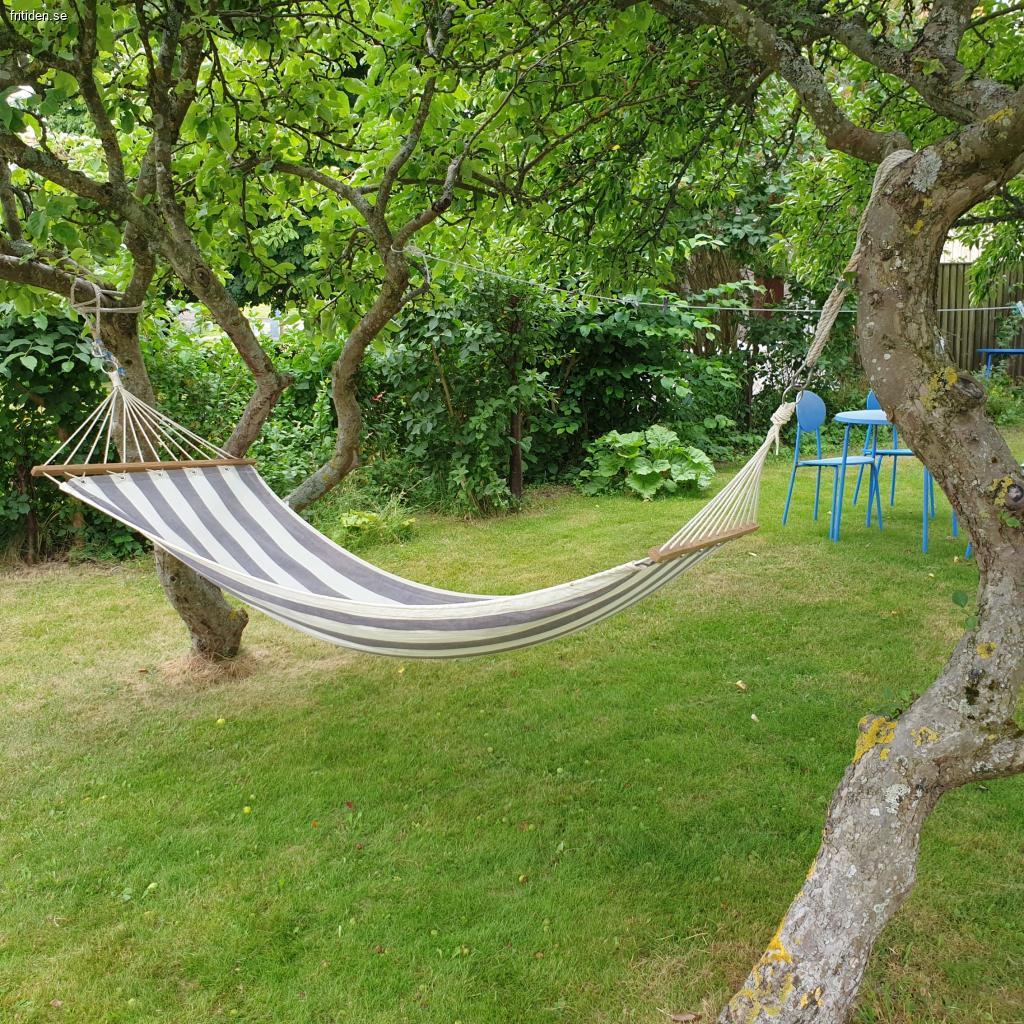Stor trädgård med fruktträd, bärbuskar och med flera grupper av trädgårdsmöbler. Här kan Du finna lugnet och en stund för Dig själv i tex hängmattan mellan fruktträden. En oas mellan klipporna! Efter en solig dag på klipporna omfamnas Du av det gröna rummet.