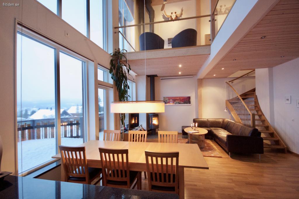 Exklusivt fritidshus i Åre Björnen. Två st 10 bädds lgh på 140 kvm, ganska spektakulär planlösning med takhöjd upp till drygt 7 meter och fönsterytor från golv till tak en trappa upp. 2 av bäddarna under snedtak på övre våning. Lägenheterna har 2 toa / duschrum, bastu, braskamin, kök i ek och granit med all utrustning. 50 tums smart TV, stereo, DVD, Playstation. Fast bredband med internt nätverk för internetuppkoppling. Jacuzzi. Golvvärme i hela huset. Stort varmgarage 10X3 m för två bilar till vardera lägenheten. Separat rum i huset för ombyte där pjäxor och hjälmar kan lämnas. Suverän, fri utsikt över Skutan, Åredalen och Renfjället. Skidnedfarten går vid husknuten till hela Åre liftsystem, ett RIKTIGT Ski-in Ski-out läge. Mycket bra längdåkning med belysning upp till 5 km.
