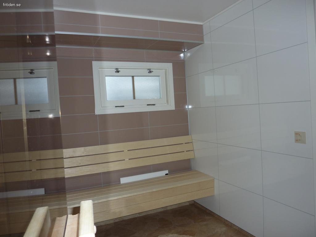 Pingisrum. Stor bastu med fönster och utsikt över fjällvärlden. Omklädningsrum, dusch och toalett i anslutning till bastun.