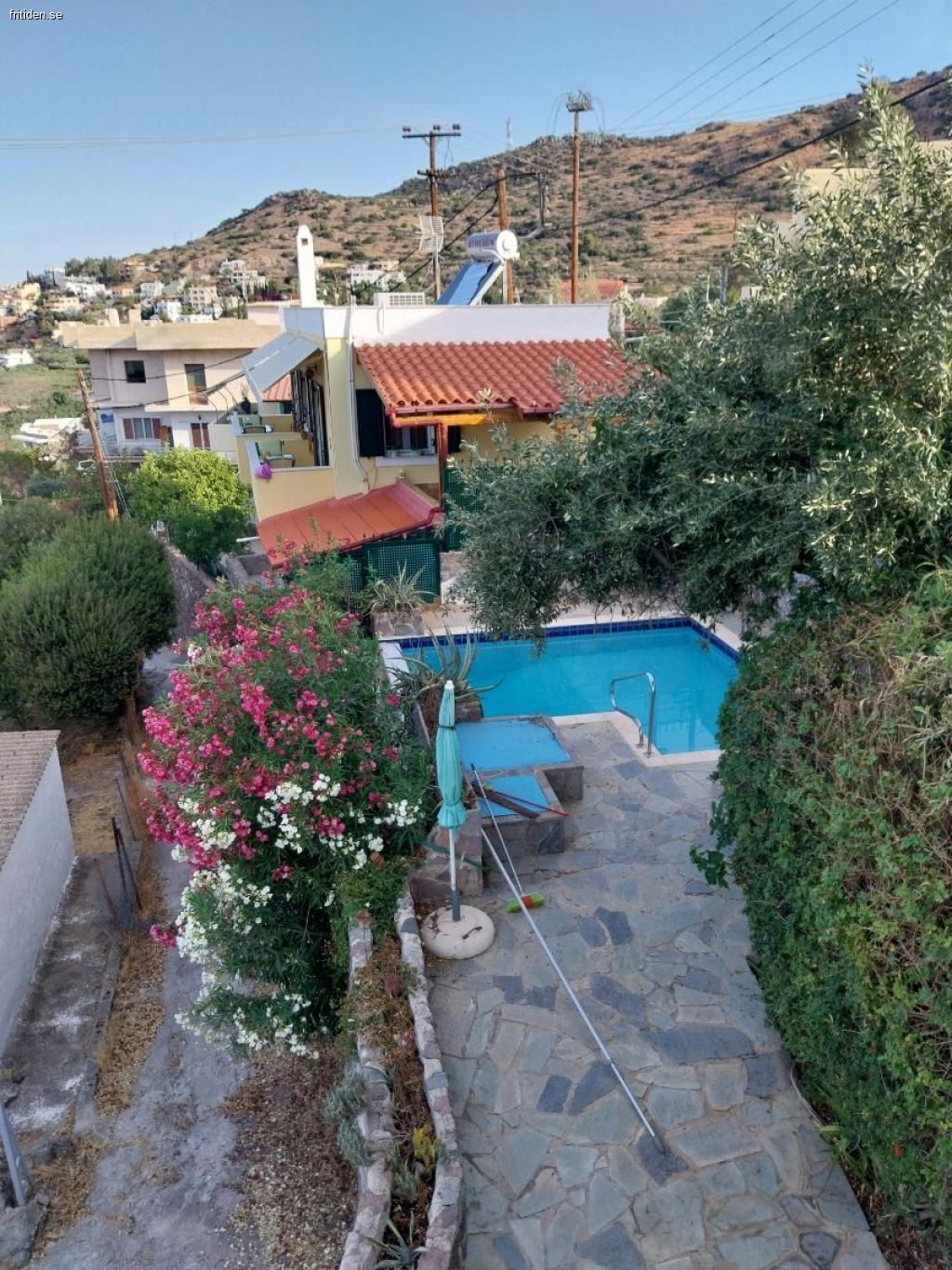 Du kommer in på övre planet i ett stort allrum med 2 balkonger där havet brer ut sig med Peleponnesos berg i bakgrunden. Mikro, diskmaskin, TV (SVT World), DVD, CDspelare, öppen spis, extra toalett. En spiraltrappa leder ner till 3 - 4 sovrum med utgång till terrassen med samma utsikt. Ett enkelrum , två dubbelrum varav det ena leder vidare till ett mindre dubbelrum. AC i hela huset. WIFI ingår. I trädgården liten men läcker pool med jacuzzi där du kan ligga och se de fantastiska solnedgångarna över havet. Ta ett glas från den lilla poolbaren och njut. Det är vårt andra hem så vi tar väl hand om det.