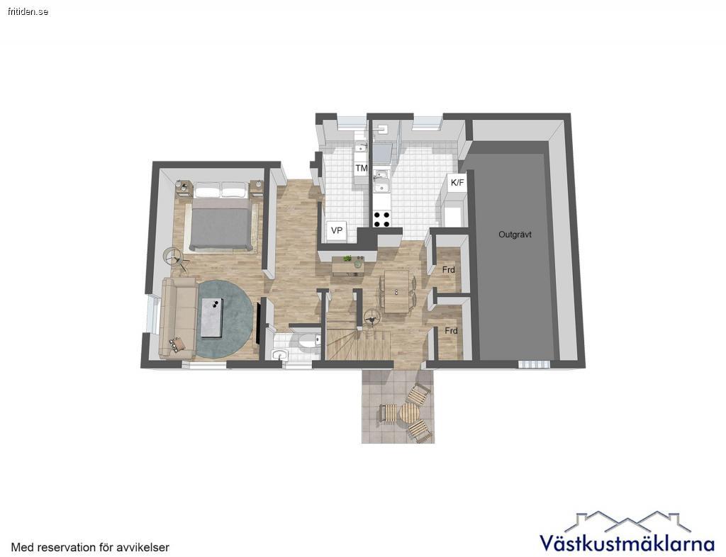 Renoverad lägenhet i markplan i vår fritidsvilla. Ca 53 kvm (4 bäddar, varav 2 i bäddsoffa) Separat kök med spis, kyl, frys, diskmaskin, micro mm. Matplats vid köket. Separat wc. Dusch. Gemensam tvättstuga.