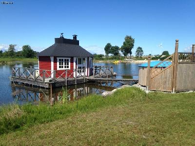 Hyra trampbåtar, båt med åror, vedeldat utekar, cyklar, kombinerad flytande grill och bastu stuga.