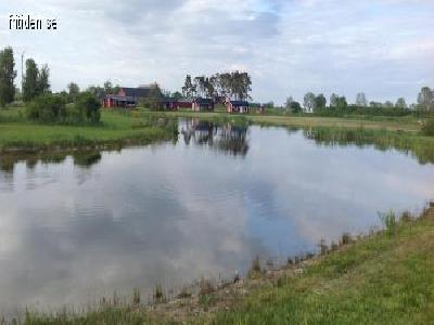Stugan ligger i ett barnvänligt område med privat damm ,brygga med stege.