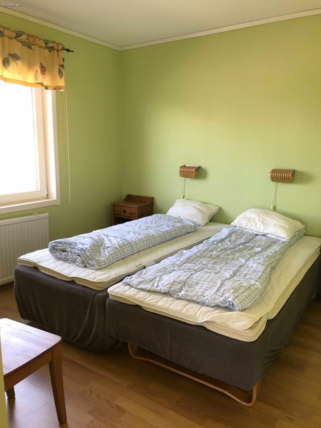 Det finns 3 sovrum med 2 st riktiga resår sängar i varje rum. Det är två lite större sovrum och ett lite mindre.
