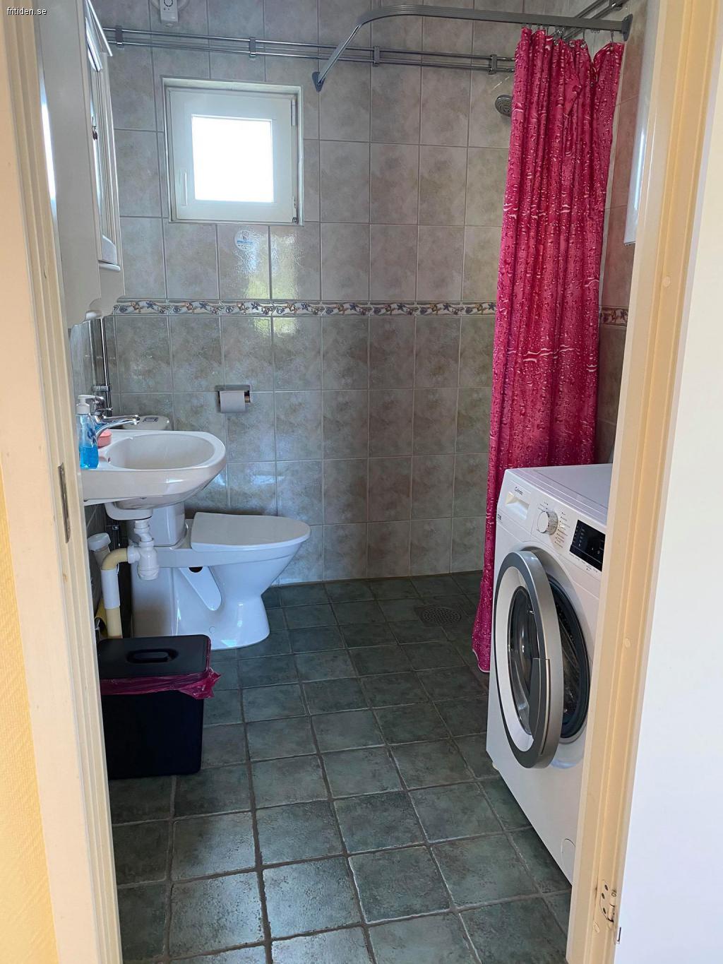 Det finns både WC & Dusch. Här finner ni även tvättmaskin.
