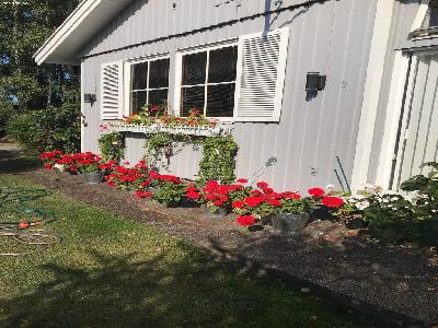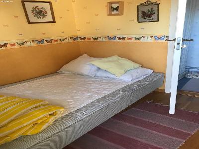 Vi har också en husvagn som kan ställas direkt intill huset med eluppkoppling och där det finns kylskåp, tv mm. Fyra bäddar.
