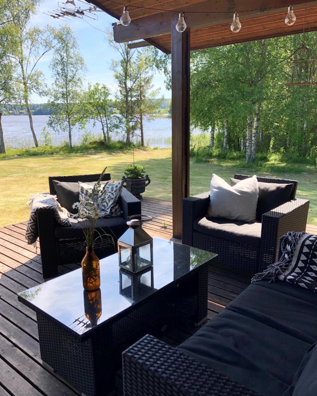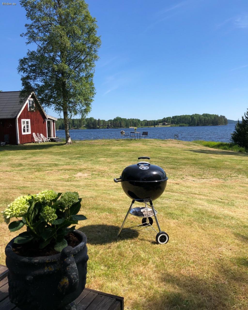 Denna idylliska stuga om 100m² ligger avskilt från grannar och allmän väg med sjötomt och egen brygga vid sjön Södra Barken. I det stora huset finns fyra separata sovrum, förråd med sovplats, badrum med wc & dusch samt vardagsrummet med öppen planlösning mot kök och stora fönsterpartier med sjöutsikt. Kommunalt vatten är draget till huset och element finns i alla rum. Föredrar man, så får man mer än gärna tända en brasa i den öppna spisen om kvällen. Skulle regnet sätta in så finns det både sällskapsspel och TV att tillgå. Runt huset löper ett trä-däck med matplats och lounge-del där man med fördel kan sitta och blicka ut över sjön. På gräsmattan som omger huset finns olika fruktträd och plats för både lek och avkoppling. Lite närmare vattnet står lill-huset med ett sovrum och inomhusveranda. Här får man även sova med sitt husdjur. Det stora huset är djurfritt p g a allergi. Med den lilla ekan kan man ro ut för en fisketur i sundet eller bara tvärs över viken för att bada och leka vid badstranden som finns där.