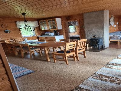 I storstugan finns kök och vardagsrumsdel i vinkel. Köket har diskmaskin, mikro, spis, kyl och frys. Köket är utrustat med husgeråd för 12 personer dessutom finns vattenkokare, våffeljärn, brödrost, kaffebryggare och elvisp. I vardagsrumsdelen finns en rymlig hörnsoffa samt TV. Storstugan har även en hemtrevlig braskamin.