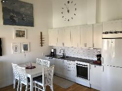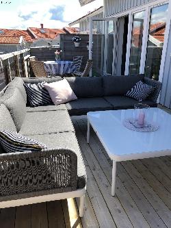 Bekvämt boende i radhus i attraktiva Hovenäset. Ett mysigt och charmigt hus byggt 2012 i ett plan plus loft. Ett boende för dig med höga krav på bekvämlighet och kvalitet. Lämpligt för par eller den lilla barnfamiljen. Huset ligger i ett lugnt område nära havet och badplats. Huset består av hall, fullt utrustat kök kombinerat med matrum och allrum. Det finns matbord med 6 stolar, en soffgrupp och TV med DVD-spelare. Soffan är bäddbar för två. Det helkaklade badrummet har toalett, dusch, tvättmaskin och torktumlare. Separat sovrum med två sängar och fyra garderober. På loftet finns ytterligare en säng och även ytterligare en TV. TV-utbudet är Telia Bas (24 olika kanaler) och WiFi finns i och utanför huset utan extra kostnad. Kaminen eldar vi inte i på sommaren. Skyddade, möblerade uteplatser finns på båda sidor om huset med sol från morgon till kväll. Som gjort för mysiga grillkvällar. Grill finns givetvis. Gratis parkering för en bil intill huset. Värd och värdinna finns tillgängliga på området om så skulle behövas. Uthyres endast veckovis. Bytesdag lördag. Detta objekt har dessa bekvämligheter: